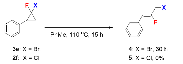 图2. 加热时溴氟环丙烷的开环异构化。图片来源:Chem. Commun.