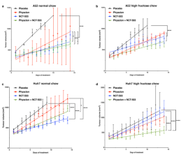 体内实验表明,在正常食物喂养的小鼠中,单独使用NCT-503和联合治疗组可显着抑制Huh7肿瘤的生长,而Physcion治疗组的生长与安慰剂相似。