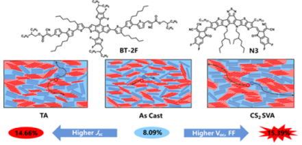 小分子太阳能电池给体/受体的化学结构,以及相形貌变化示意图
